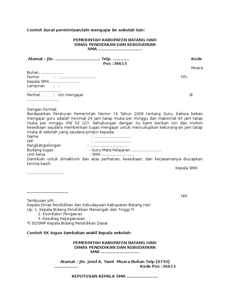 Contoh Surat Permohonan Guru Ganti / Contoh format surat lamaran guru.