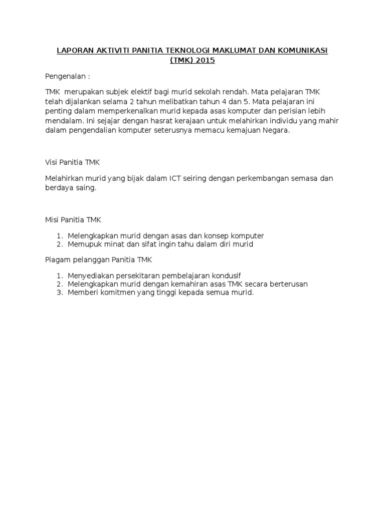 Teknologi komunikasi adalah satu istilah yang menggambarkan saling hubungan antara manusia yang berlandaskan kepada teknologi sebagai alat bantu gerak sesuatu maklumat, masej, pesanan, perasaan atau fikiran supaya disampaikan dengan jelas dan tepat kepada penerima. Pengisian borang pelaporan mata pelajaran tmk tahun 4 ini hendaklah diisi dan dinilai sepanjang masa bagi sepanjang tahun persekolahan murid. Maklumat yang terdapat di dalam intranet dilindungi dengan kata laluan atau firewall. Objektif bab ini adalah untuk menjelaskan pelbagai jenissistem maklumat dan evolusinya, mengenal sistem maklumatfungsi (functional) dan pemprosesan transaksi, danmembincangkan infrastruktur dan senibina maklumat. Teknologi maklumat dan komunikasi (ict) serta internet telah menjadikan dunia ini sebuah perkampungan global (global village).