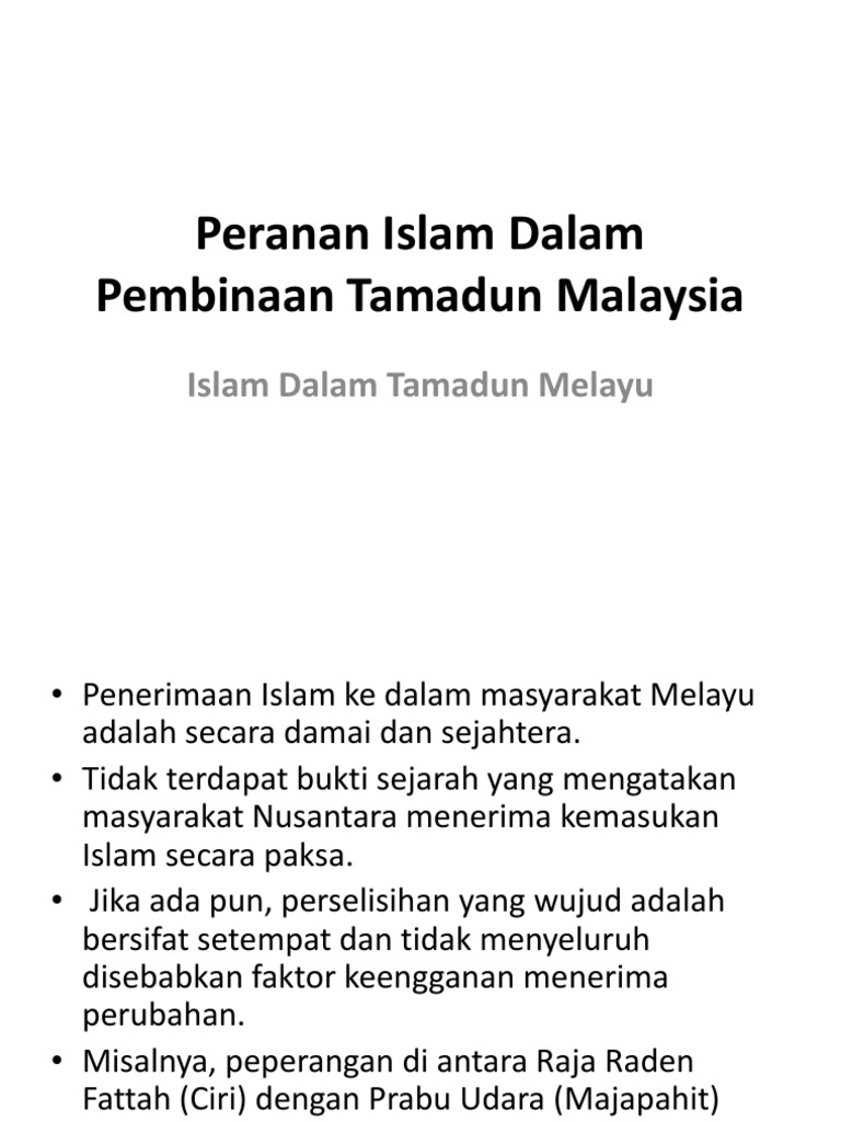 Peranan Islam Dalam Pembinaan Tamadun Malaysia from imgv2-1-f.scribdassets.com Islam menjadi indetiti sosial dan budaya orang melayu. Agama islam dipercayai tiba di negara china lebih daripada 1400 tahun yang lalu. Tolong di bantu ya kk. Islam merupakan agama yang mudah untuk difahami dan tidak pengaruh dan kesan tamadun islam dalam tamadun melayu. Politik, kesusasteraan, agama dan moral. Para ulama yang sangat berjasa dalam penyebaran agama islam di jawa adalah wali songo atau wali sembilan. Disini dapat diperlihatkan bagaimana agama mempunyai kaitan yang begitu rapat dengan tamadun sebagaimana. Malah agama islamlah yang telah meningkatkan tamadun melayu ke tahap antarabangsa iaitu meletakkannya dalam satu rangkaian panislamikan yang sejagat, sesuai dengan sifat kesejatan islam itu sendiri.